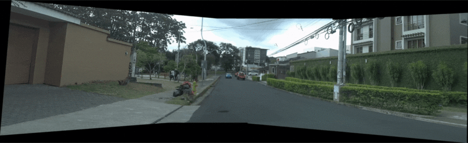 With the cameras calibrated use the following pipeline in a Jetson platform to create a stitched video of the data set video files. This pipeline took the videos and the homography matrices and perform a warping and blending of the three video files, dumping the result in a mp4 video file output.