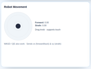 The robot motion controls allow the operator to drive the robot during teleoperation. Controls are presented using on-screen elements, such as virtual joysticks, and can be complemented by keyboard inputs for precise and responsive motion control.