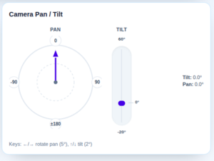 The camera control section allows the operator to adjust the robot camera orientation. Operators can pan and tilt the camera to modify the viewing angle and improve visibility of the environment.