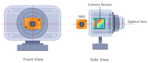 - The IMU should ideally be placed as close as possible to the optical center of the camera, which is approximately the center of the image sensor along the optical axis.